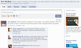 The image below, shows the dilemma that Joe Hockey is facing. He was poorly advised when it came to social media and wasted time creating a personal page, which only accepts a limited number of friends. So he inevitable ‘rejects’ potential friends not something any politician wants to do. Should he set up a Facebook fan page – yes it will allow he any number of fans, it will provide him the flexibility to load videos and comments, and allow for dialogue between Joe and his followers.